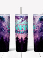 20 oz Skinny Tumbler, Camping Tumbler, Night Sky and Forest Camping Awaits, gift for camper, love to camp, 20 oz Stainless Steel Tumbler
