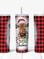 - 20 oz Skinny Tumbler, Christmas Cow with Red Buffalo Plaid Tumbler, Fun Christmas Tumbler, Christmas Skinny, 20 oz Stainless Steel Tumbler