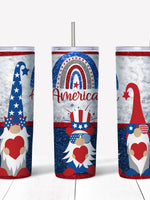 - 20 oz Skinny Tumbler, Patriotic Gnome Tumbler, Gnome Tumbler, July 4th Gnome tumbler, USA Gnome gift,, 20 oz Stainless Steel Tumbler