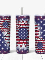 - 20 oz Skinny Tumbler, Patriotic Tumbler, Red White & Blue Sunflower Skinny Tumbler, Flag Sunflowers Tumbler, 20 oz Stainless Steel Tumbler