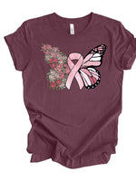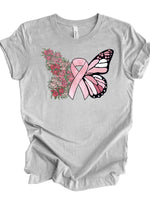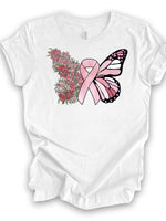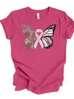 Breast Cancer Awareness, Pretty Pink Ribbon Butterfly, Pink Ribbon Design on premium unisex shirt, 3 color choices, 3x pink, 4x pink