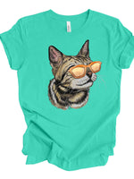 Cat Tee, Super Cute Tabby Cat with Sunglasses, Cat with Sunglasses design, premium unisex shirt, 3 color choices, 3x cat, 4x cat