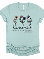- Christian Tee, His Mercies Are New Every Morning, Lamentations 323 design, premium unisex shirt, 3 color choices, 3x Christian, 4x Christian