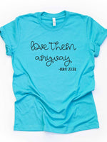 - Christian Tee, Love Them Anyway, Luke 23:34, Christian Verse Love Them Like Jesus on premium unisex shirt, 3 color choices, 3x, 4x christian