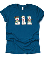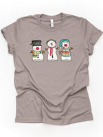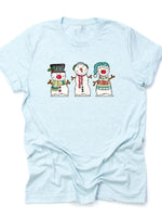 - Christmas and Winter Tee, Cute Trio of Snowmen, Three Adorable Snowmen Design on premium cotton unisex shirt, plus sizes, 2x, 3x, 4x