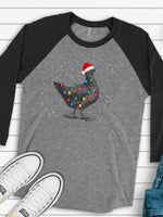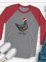 - Christmas Chicken Raglan, Cute Chicken in Santa Hat with Christmas Lights Design on premium Raglan 3/4 sleeve shirt, plus size, 2X, 3X