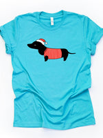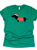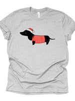 - Christmas Dog Tee, Cute Dachshund with Christmas Sweater and Santa Hat, premium unisex shirt, 3 color choices, 3x christmas, 4x christrmas