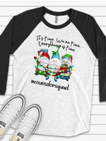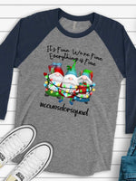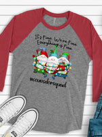 - Christmas Gnomes, It's Fine, We're Fine, Everything is Fine, Counselor Squad Design on premium Raglan 3/4 sleeve shirt, plus size, 2X, 3X