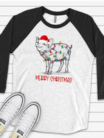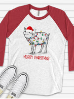 - Christmas Pig Raglan, Cute Pig in Santa Hat with Christmas Lights Design on premium Raglan 3/4 sleeve shirt, plus size, 2X, 3X