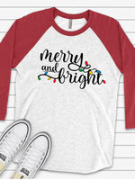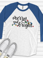 - Christmas Raglan, Beautiful Christmas Lights Merry and Bright Design on premium Raglan 3/4 sleeve shirt, plus size, 2X, 3X