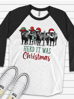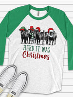 - Christmas Raglan, Christmas Cows, Cute Cow Herd That It Was Christmas Design on premium Raglan 3/4 sleeve shirt, plus size, 2X, 3X