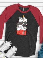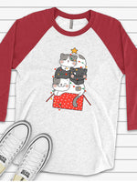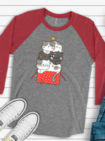 - Christmas Raglan, Cute Cats in a Box, Christmas Cats in Box Design on premium Raglan 3/4 sleeve shirt, plus size, 2X, 3X