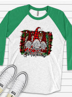 - Christmas Raglan, Cute Christmas Gnomes with Plaid and Leopard Print Hats Design on premium Raglan 3/4 sleeve shirt, plus size, 2X, 3X