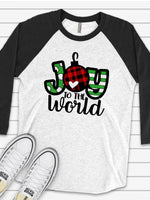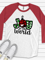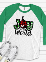 - Christmas Raglan, Cute Joy to the World Plaid Ornament, JOY Ornament Design, premium Raglan 3/4 sleeve shirt, plus size, 2X, 3X