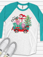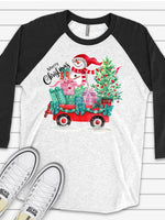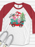 - Christmas Raglan, Cute Snowman in A Wagon, Snowman and Christmas Tree Design on premium Raglan 3/4 sleeve shirt, plus size, 2X, 3X