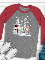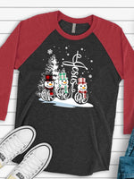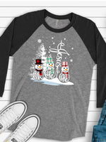 Christmas Raglan, FAITH HOPE LOVE with Jesus Cross and Snowmen, Christian Design on premium Raglan 3/4 sleeve shirt, plus size, 2X, 3X