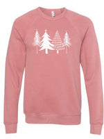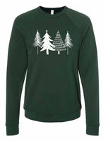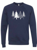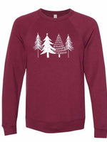 - Christmas Sweatshirt, Beautiful White Christmas Trees Design, Unisex Sponge Fleece Raglan Crewneck Bella + Canvas, Fall Sweatshirt
