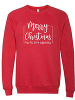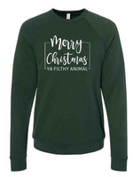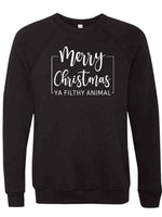 - Christmas Sweatshirt, Merry Christmas Ya Filthy Animal Design, Unisex Sponge Fleece Raglan Crewneck Bella + Canvas, Fall Sweatshirt