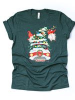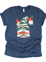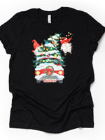 - Christmas Tee, Christmas Gnomes Hanging on Christmas Tree in a Old Truck, premium unisex shirt, 3 color choices, 3x christmas, 4x christrmas