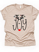 - Christmas Tee, Cute JOY Reindeer with Lights in Antlers, Christmas Reindeer Design on premium cotton unisex shirt, plus sizes, 2x, 3x, 4x