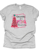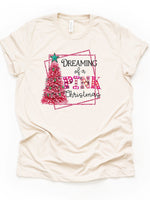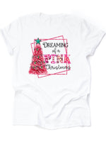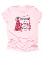- Christmas Tee, Dreaming of a Pink Christmas, Cute Pink Christmas tree Design on premium cotton unisex shirt, plus sizes, 2x, 3x, 4x