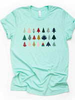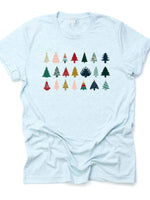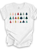 - Christmas Tee, Fun Christmas Trees in Rows, Modern Christmas Trees in a Row Design on premium cotton unisex shirt, plus sizes, 2x, 3x, 4x