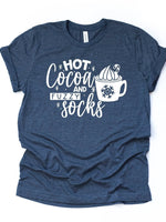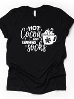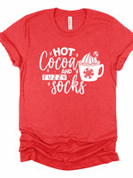 - Christmas Tee, Hot Cocoa and Fuzzy Socks, Cute Hot Chocolate and Socks Design on premium cotton unisex shirt, plus sizes, 2x, 3x, 4x