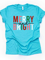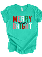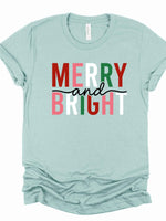 - Christmas Tee, Super Fun Merry and Bright Word Art, Merry & Bright Design on premium unisex shirt, 3 color choices, 3x santa, 4x santa