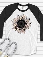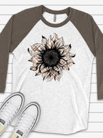 Cute Fall Raglan, Sunflower Raglan, Tan and Orange Plaid Sunflower Design on premium Raglan 3/4 sleeve shirt, plus size, 2X, 3X