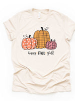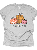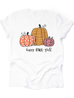 Cute Simple Pumpkins, Happy Fall Y'all, Plaid, Polka Dot & Pink Pumpkins Design on premium unisex shirt, 4 color choices, 3x fall, 4x fall