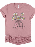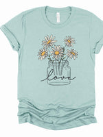 Daisies Tee, Pretty Jar of Daisies with LOVE Inscribed, Love Design, premium unisex shirt, 3 color choices, 3x daisies, 4x daisies, plus