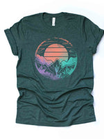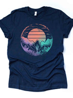 Desert Sunset Tee, Retro Look Desert Sunset, Distressed Sunset in Desert Design on premium unisex shirt, 3x desert sunset, 4x desert sunset