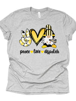 Dispatcher, Peace, Love, Dispatch Gnome, Dispatcher Gnome Design, premium Bella + Canvas unisex shirt, 2X, 3X, 4X, plus sizes