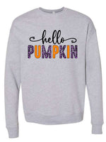 Fall Pumpkin Sweatshirt, Cute Hello Pumpkin Design, Unisex Sponge Fleece Drop Shoulder Crewneck Bella + Canvas, Fall Pumpkin Sweatshirt