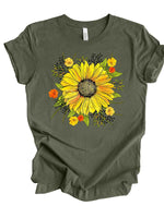 Fall Tee, Pretty Yellow Sunflower with Fall Flowers, Sunflower Design on premium unisex shirt, 3 color choices, 3x fall, 4x fall