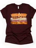 Fall Tee, Unique Fall Brush Strokes with Copper and Gold, Gold Flowers Design on premium unisex shirt, 3 color choices, 3x fall, 4x fall