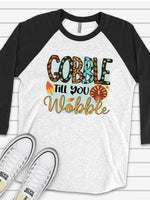 Fall & Thanksgiving Raglan, Super Fun Gobble Til You Wobble Teal and Tan Turkey Design on premium Raglan 3/4 sleeve shirt, plus size, 2X, 3X