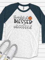 Fall & Thanksgiving Raglan, Thankful, Blessed and Mashed Potatoes Obsessed Design on premium Raglan 3/4 sleeve shirt, plus size, 2X, 3X
