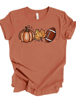 Fall Time, Pumpkin, Fall Leaf and Football, Fall & Football, Football Time Design on premium unisex shirt, 3 color choices, 3x Fall, 4x Fall