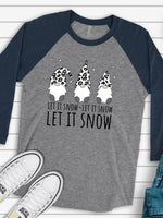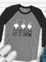 - Gnome Raglan, Winter Snow Gnomes, Gnomes in Leopard Print Hat LET IT SNOW Design on premium Raglan 3/4 sleeve shirt, plus size, 2X, 3X