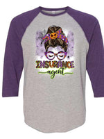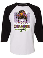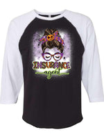 Halloween Raglan, Messy Bun Insurance Agent Halloween Design on premium Raglan 3/4 sleeve shirt, plus size, 2X raglan, 3X raglan