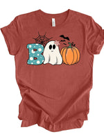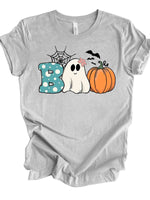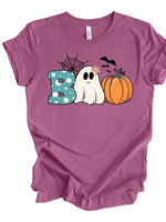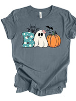 Halloween Shirt, Super Fun BOO with Ghost and Pumpkin Design on premium Bella + Canvas unisex shirt, 3 color choices, 3x Boo, 4x Halloween