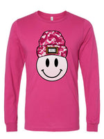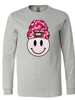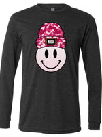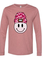 Mama Long Sleeve Tee, Fun Smiley Face with Beanie, Mama Hat Smiley Face Design on premium unisex long sleeve tee, 3x plus size long sleeve