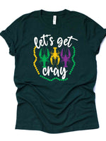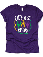 - Mardi Gras Gnome Tee, Mardi Gras Let's Get Cray Crawfish Design on premium unisex shirt, 3 color choices, 3x Mardi Gras, 4x Mardi Gras