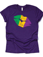 - Mardi Gras Gnome Tee, Mardi Gras Lips Design on premium unisex shirt, 3 color choices, 3x Mardi Gras, 4x Mardi Gras