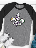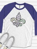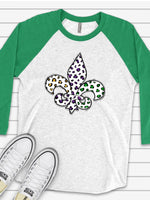 Mardi Gras Raglan, Super Cute Mardi Gras with Fleur De Lis Design on premium Raglan 3/4 sleeve shirt, plus size, 2X, 3X