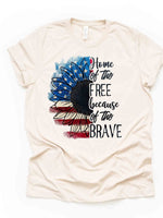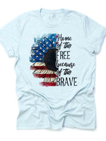 - Patriotic Sunflower, Home of the Free Because of the Brave Design, premium Bella + Canvas unisex shirt, 3 color choices, 3x truck, 4x truck