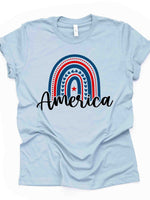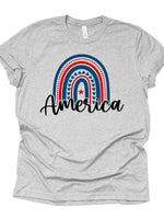 - Patriotic Tee, Cute American Rainbow, Red White Blue Rainbow Design on premium unisex shirt, 3 color choices, 3x USA, 4x USA, plus patriotic