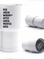 Features: double walled with lid. Keeps your drink cold or warm for hours!
