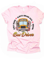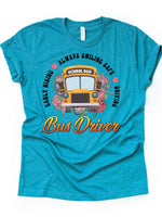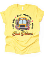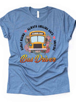 School Bus Driver Shirt, Early Rising, Always Smiling, Safe Driving Design on premium Bella + Canvas unisex shirt, 3 colors, 3x bus, 4x bus